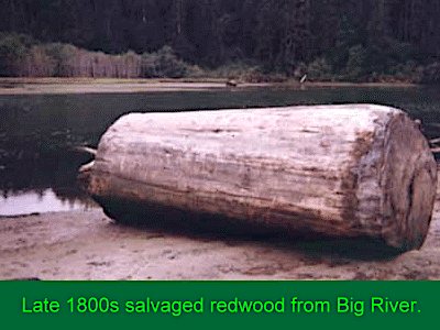 Our redwood is ecologically sound; having been cut by original loggers of the mid-1800s and then some sunk to the bottom of Big River for over 135 years, this lost treasure was salvaged by hand-wench and lift of the tides, raising the water-logged giants from the river bottom 35 feet below. Our redwood is not from second-growth harvesting.