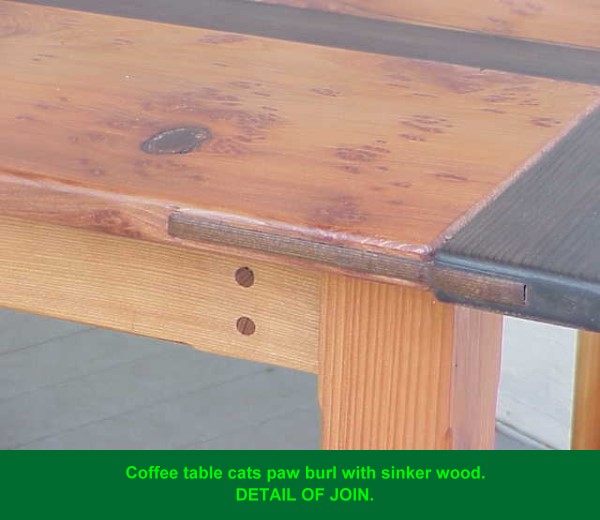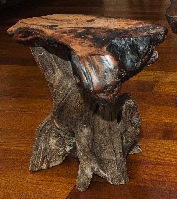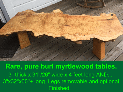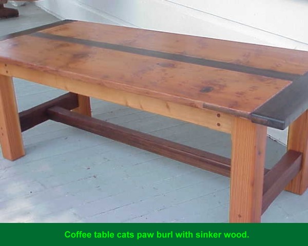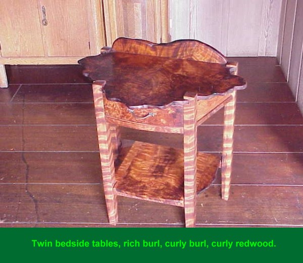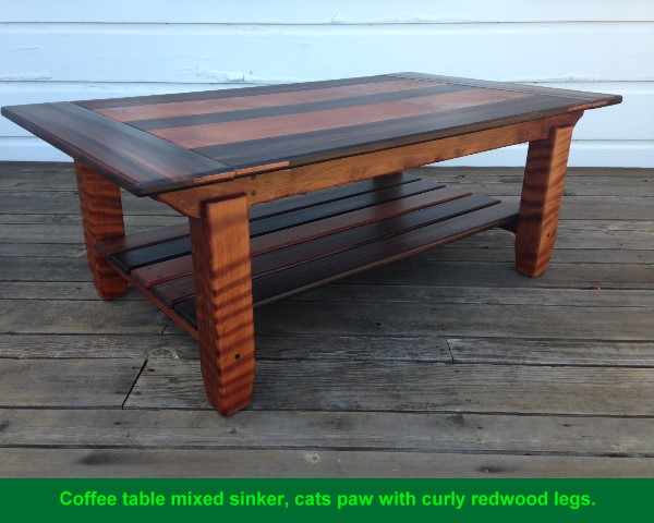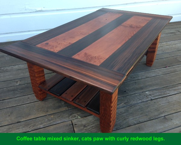 Crafted with mixed Clear All Heart vertical Old Growth Redwood. Two 23″ pieces sandwiching Cats Paw Burl.