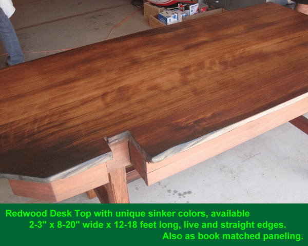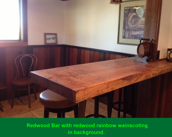 Find here beautiful exotic Redwood for crafting tables, fine furniture, paneling, wainscoting, trusses, custom doors, slabs, and beams.
