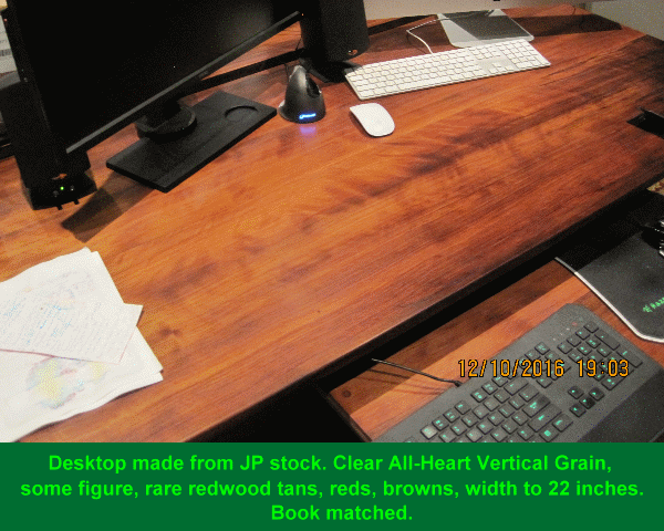 Our redwood’s appeal is First Growth, a different animal from 2nd-5th-growth redwood. Once Old Growth Redwood is cut, the new wood grows from its original roots, and many, many times faster, resulting in lots of small “sucker” trees. This new rapid growth produces very pulpy wood with wide growth rings, as the roots are already established. This is not dense old growth with tight growth rings. Our Old Growth, tight-grain Redwood appeals to first-rate woodworkers, who, in my father’s words, want to build something really beautiful “guiltlessly.”